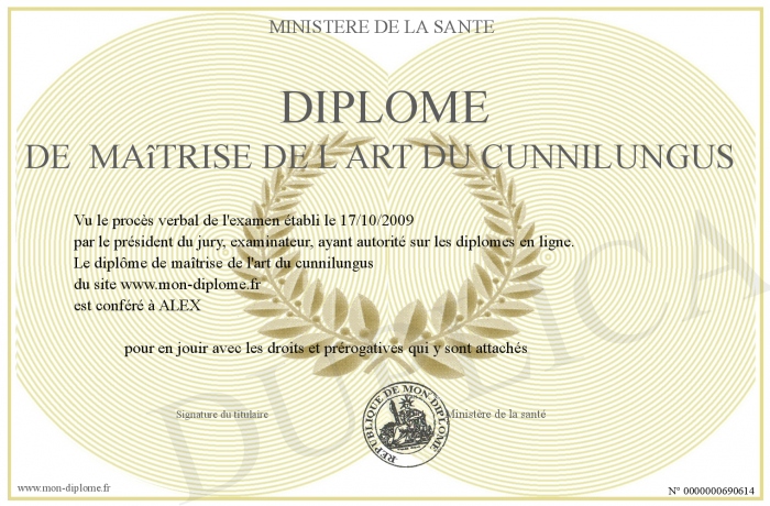 Envoyez par email votre Diplôme de maîtrise de l art du cunnilungus personalisé