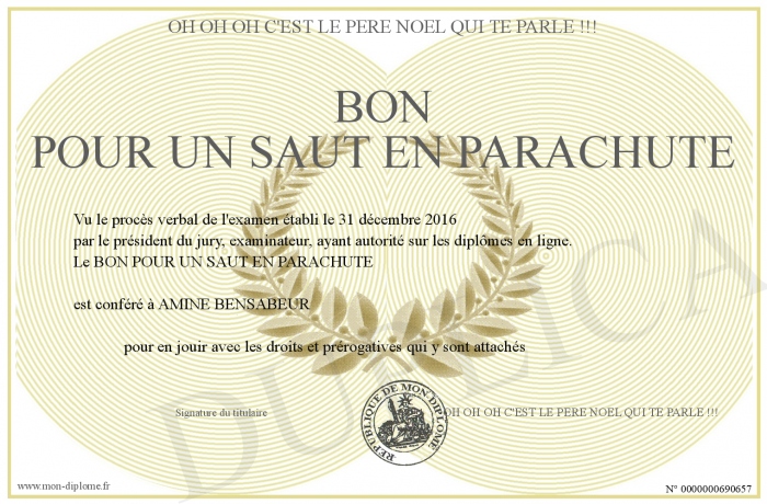 Envoyez par email votre BON POUR UN SAUT EN PARACHUTE personalisé