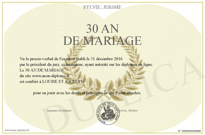 Envoyez par email votre 30 AN DE MARIAGE personalisé