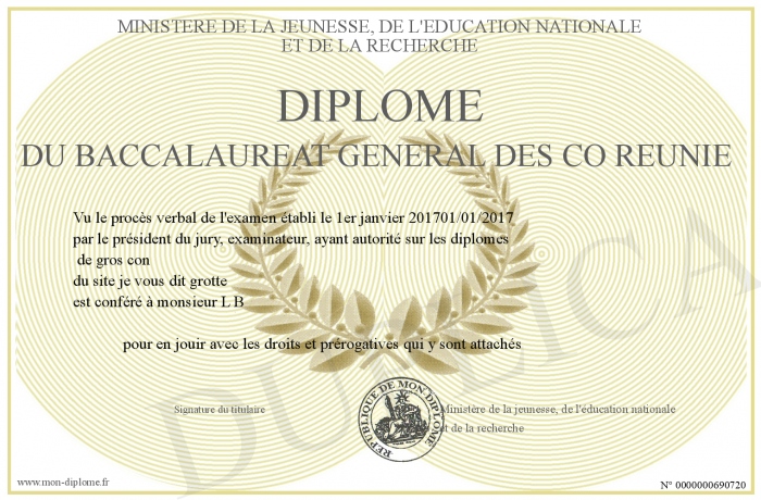 Envoyez par email votre Diplôme du baccalaureat général des co reunie personalisé