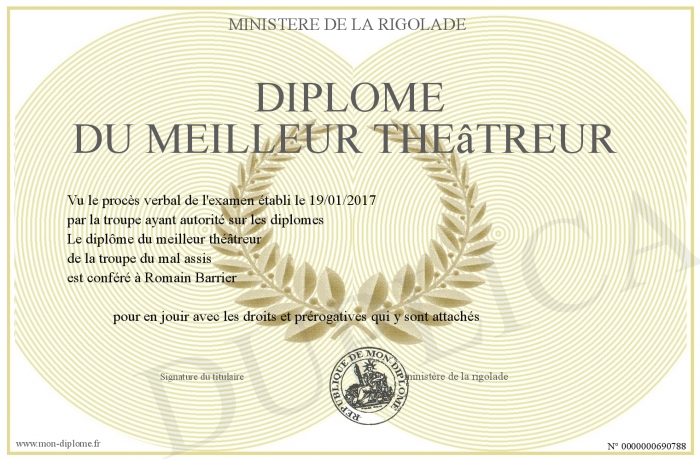 Envoyez par email votre Diplôme du meilleur théâtreur personalisé
