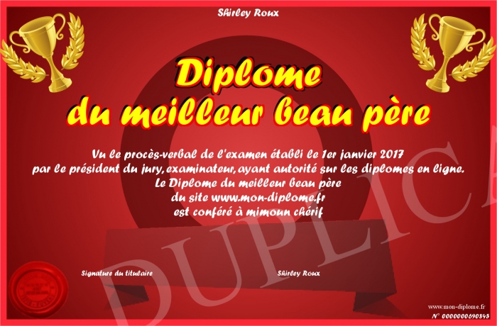 Envoyez par email votre Diplome du meilleur beau père personalisé