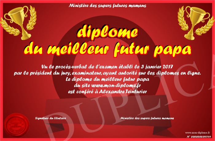 Envoyez par email votre diplôme du meilleur futur papa personalisé