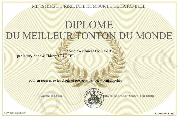 Envoyez par email votre Diplôme du Meilleur Tonton du monde personalisé