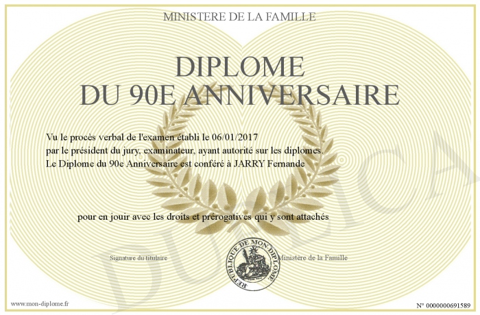 Envoyez par email votre Diplôme du 90e Anniversaire personalisé