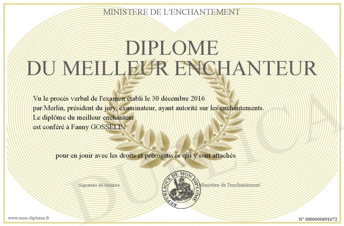 Envoyez par email votre Diplôme du meilleur enchanteur personalisé