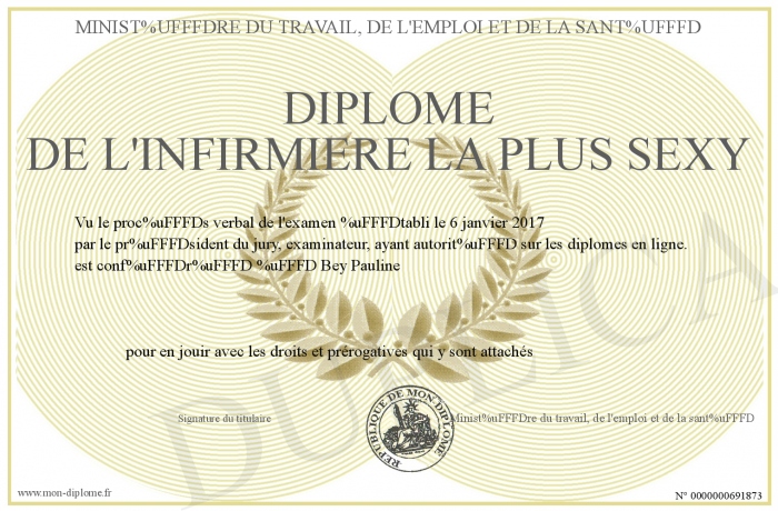 Envoyez par email votre Diplome de l'infirmiere la plus sexy personalisé