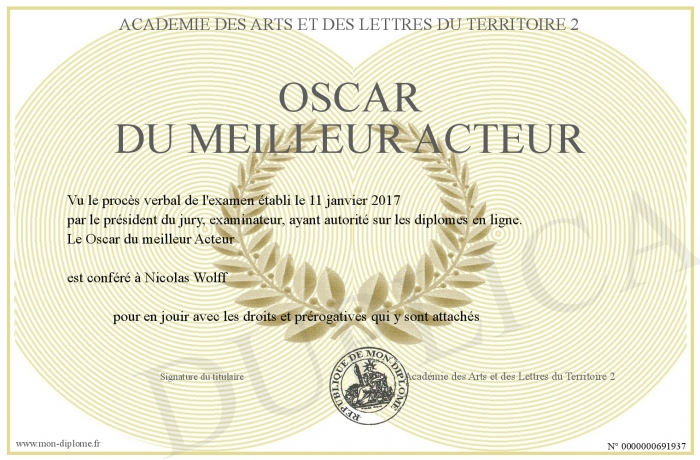 Envoyez par email votre Oscar du meilleur Acteur personalisé