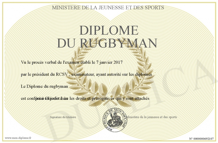 Envoyez par email votre Diplôme du rugbyman personalisé