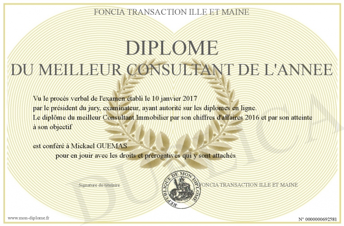 Envoyez par email votre DIPLOME DU MEILLEUR CONSULTANT DE L'ANNEE personalisé
