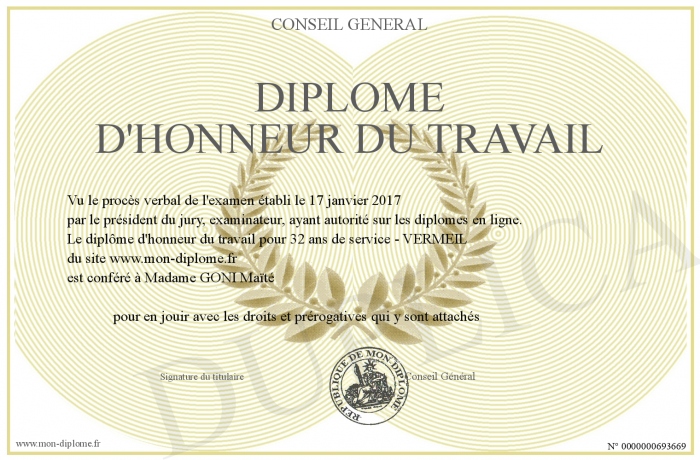 Envoyez par email votre Diplôme d'honneur du travail personalisé