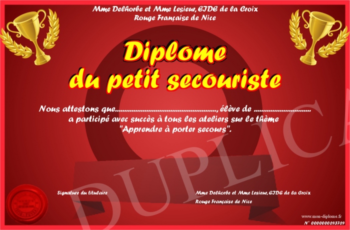 Envoyez par email votre Diplôme du petit secouriste personalisé