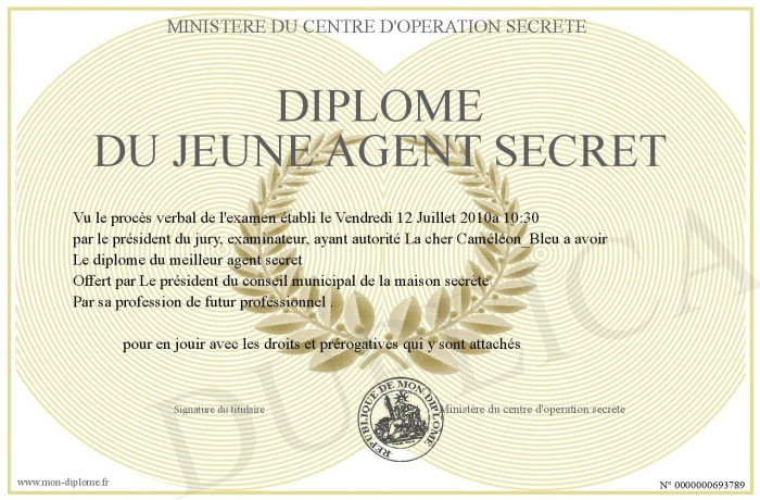 Envoyez par email votre Diplome du jeune agent secret personalisé