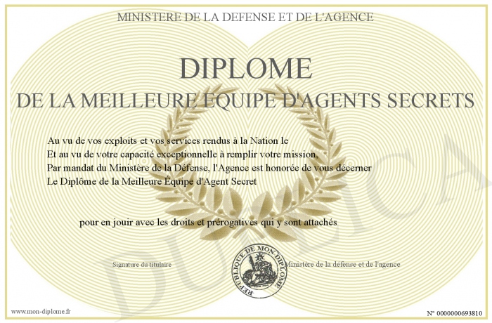 Envoyez par email votre Diplôme de la meilleure équipe d'agents secrets personalisé