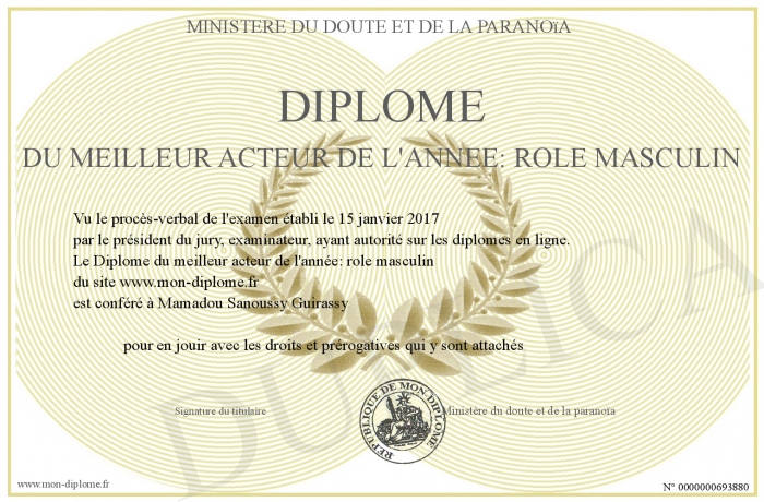 Envoyez par email votre Diplôme du meilleur acteur de l'année: rôle masculin personalisé