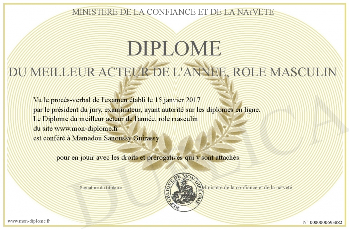 Envoyez par email votre Diplôme du meilleur acteur de l'année, rôle masculin personalisé