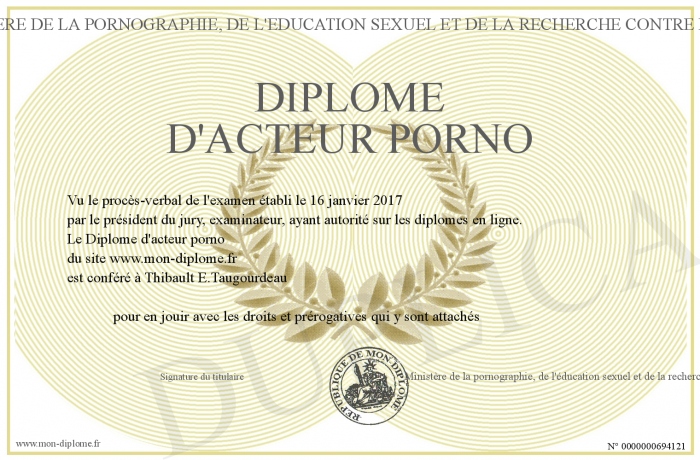 Envoyez par email votre Diplôme d'acteur porno personalisé