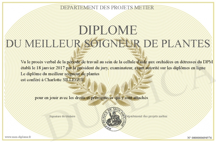 Envoyez par email votre diplôme du meilleur soigneur de plantes personalisé