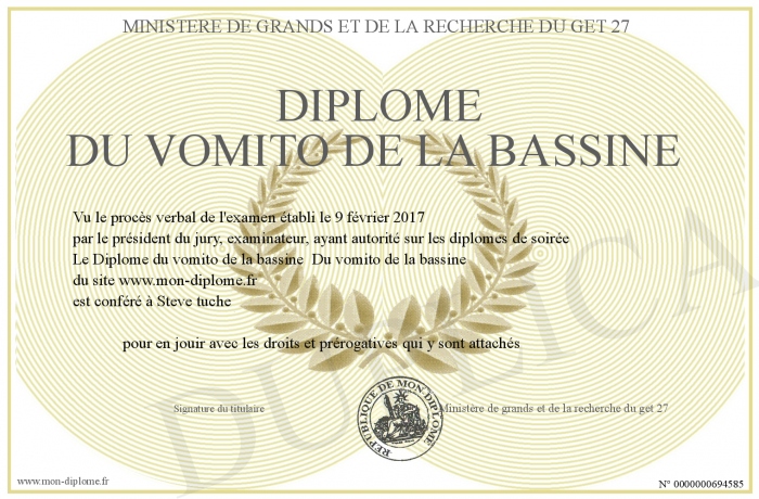 Envoyez par email votre Diplôme du vomito de la bassine personalisé