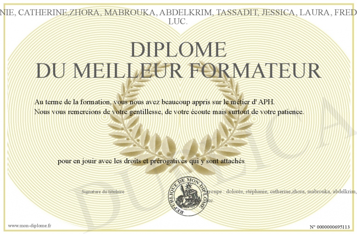 Envoyez par email votre Diplôme du meilleur formateur personalisé