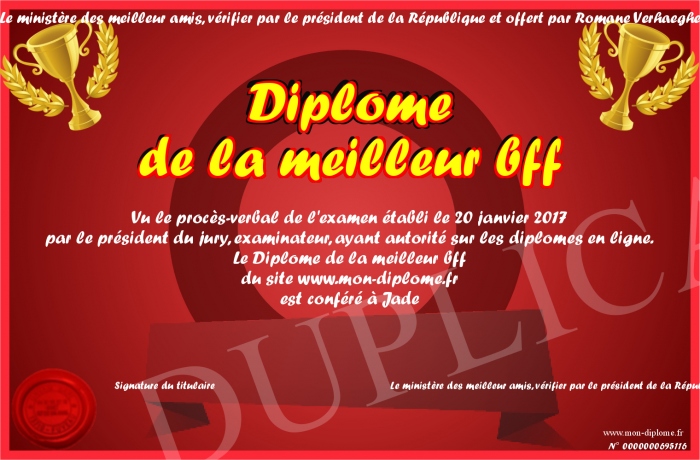 Envoyez par email votre Diplôme de la meilleur bff personalisé
