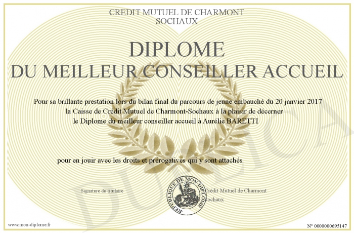 Envoyez par email votre Diplôme du meilleur conseiller accueil personalisé