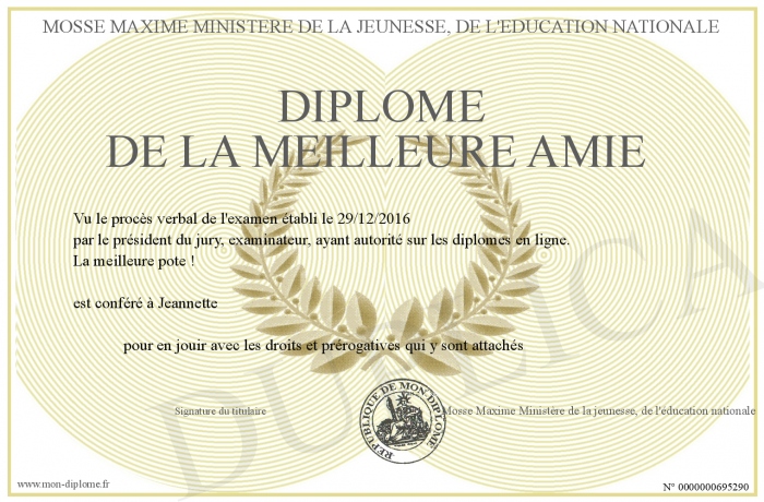 Envoyez par email votre Diplôme de la Meilleure Amie personalisé