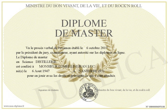 Envoyez par email votre Diplome de master personalisé