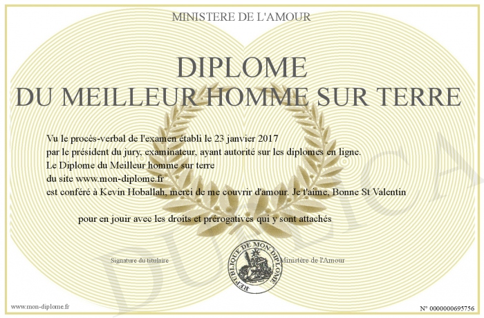 Envoyez par email votre Diplôme du Meilleur homme sur terre personalisé