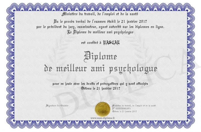 Envoyez par email votre Diplome de meilleur ami psychologue personalisé