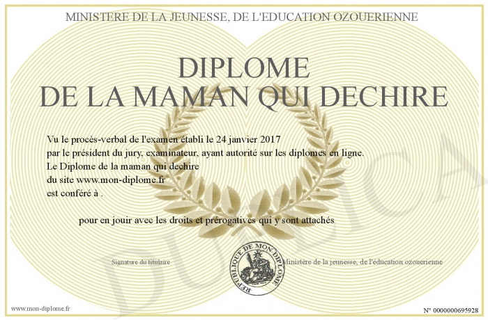 Envoyez par email votre Diplôme de la maman qui dechire personalisé
