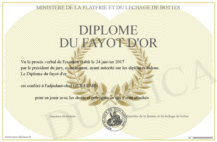 Envoyez par email votre Diplôme du fayot d'or personalisé