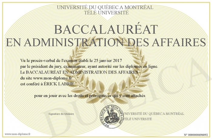 Envoyez par email votre BACCALAURÉAT EN ADMINISTRATION DES AFFAIRES personalisé