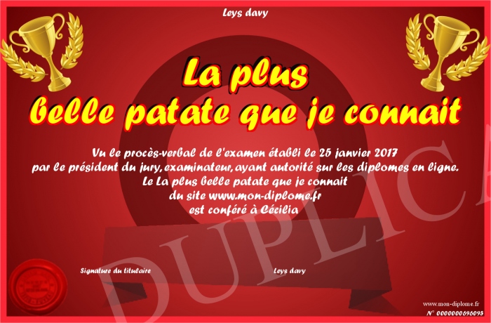 Envoyez par email votre La plus belle patate que je connait personalisé