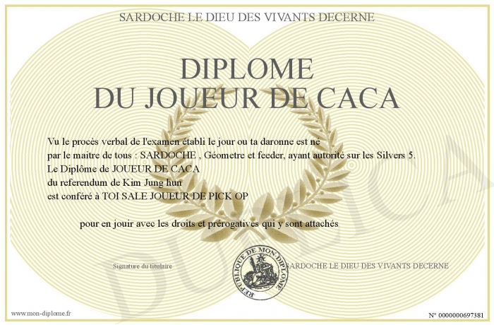 Envoyez par email votre Diplôme DU JOUEUR DE CACA personalisé