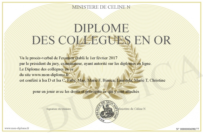 Envoyez par email votre Diplôme des collègues en or personalisé