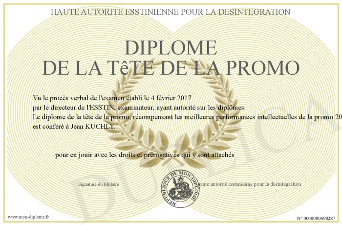 Envoyez par email votre diplôme de la tête de la promo personalisé