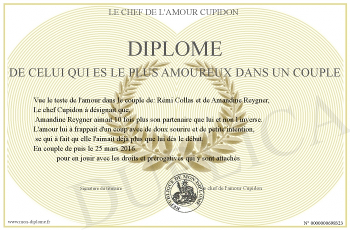 Envoyez par email votre Diplôme de celui qui es le plus amoureux dans un couple personalisé