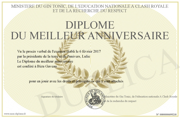 Envoyez par email votre Diplôme du meilleur anniversaire personalisé