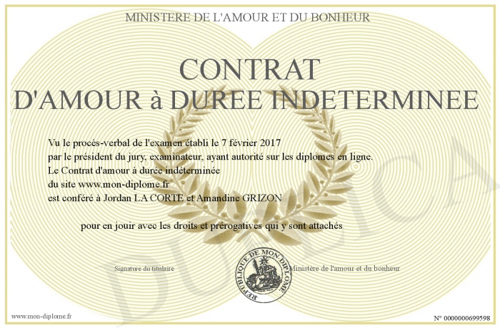 Envoyez par email votre Contrat d'amour à durée indéterminée personalisé