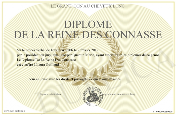 Envoyez par email votre Diplôme De La Reine Des Connasse personalisé