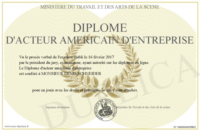 Envoyez par email votre Diplôme d'acteur américain d'entreprise personalisé