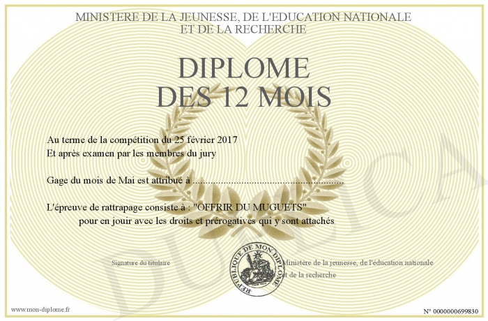 Envoyez par email votre Diplôme des 12 mois personalisé
