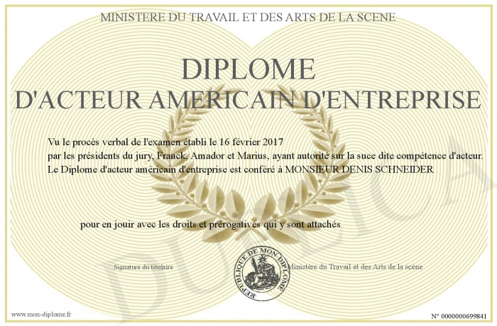 Envoyez par email votre Diplôme d'acteur américain d'entreprise personalisé