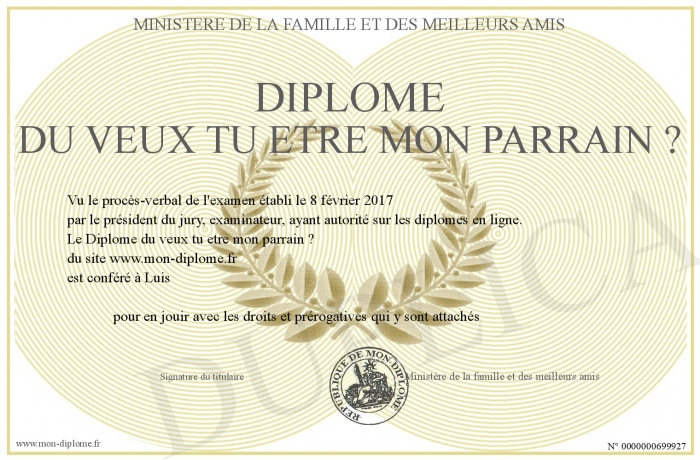 Envoyez par email votre Diplôme du veux tu etre mon parrain ? personalisé