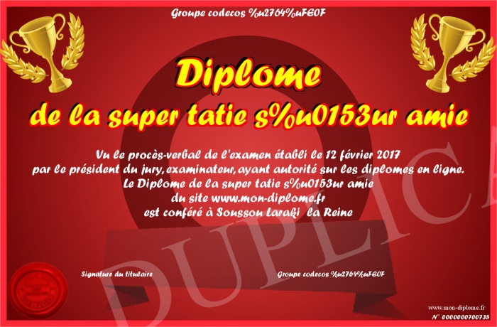 Envoyez par email votre Diplôme de la super tatie soeur amie personalisé