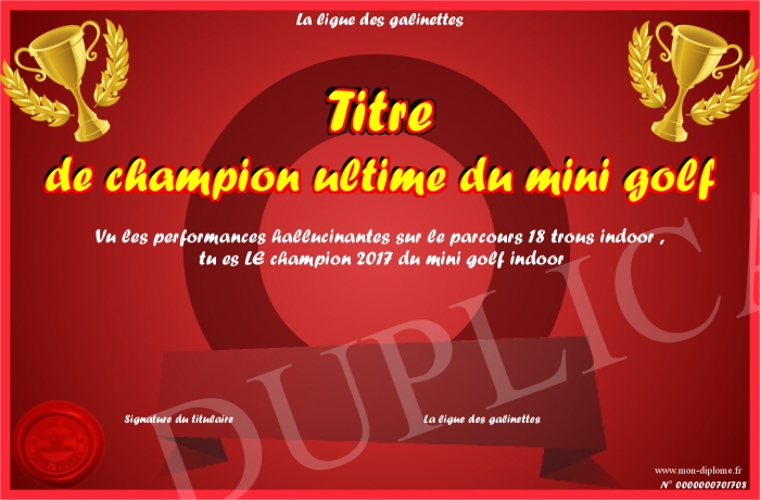 Envoyez par email votre Titre de champion ultime du mini golf personalisé