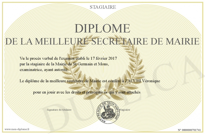 Envoyez par email votre Diplôme de la meilleure secrétaire de Mairie personalisé