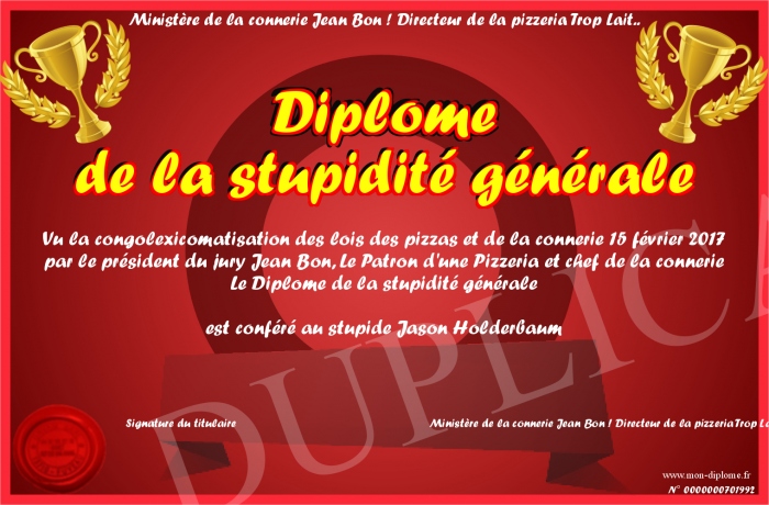 Envoyez par email votre Diplôme de la stupidité générale personalisé