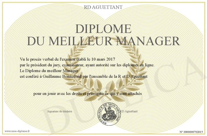 Envoyez par email votre Diplôme du meilleur Manager personalisé